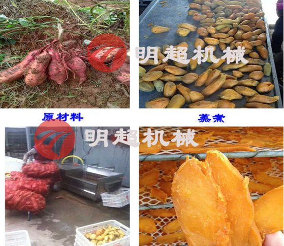 清洗后的,就需要蒸煮環節了,蒸煮環節需要放進蒸箱內,蒸煮時間長短要根據紅薯的大小確定時間,切記紅薯不能蒸的太爛,負責容易出現松軟,不好切制,加工起來的紅薯色澤也就有很大的變化了