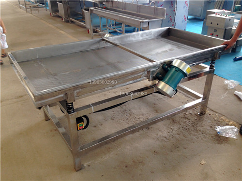 6、震動瀝水機:分切后的蔬菜帶有大量的水滴,通過震動瀝水機將蔬菜大量的水滴去掉,該機根據蔬菜的品種可設計