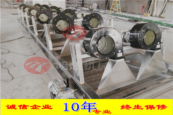 6.通過風刀將自然風轉換成強流風。風干機輸送網帶設計為多次翻轉輸送,確保產品兩面除水效果,風干機吹干效果良好 設備采用變頻輸送,速度可調輸送平穩。
