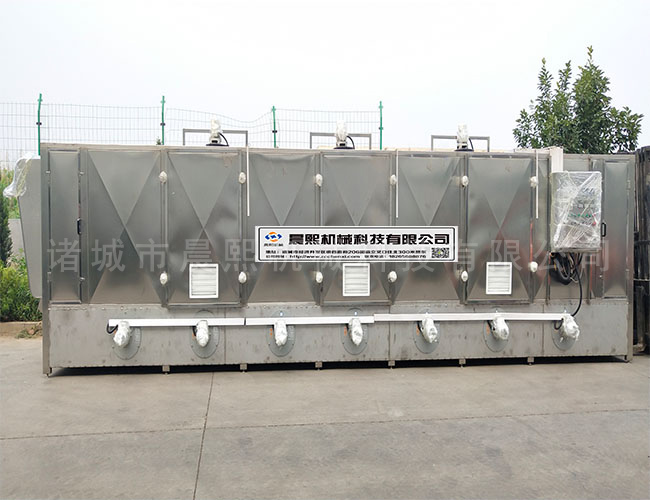 三、瀝水:將清洗好的香蔥,用香蔥風干機進行風干瀝水,需要用到平行的網帶,如果用翻轉的香蔥很亂,用平行的香蔥不亂,在整個清洗到風干瀝水過程中,都采用的是一條網帶。