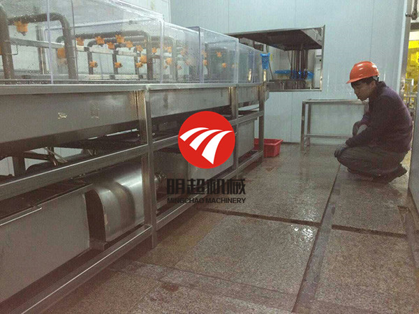 2. 設備有熱堿水噴淋段、熱水噴淋段、清水噴淋段、消毒水噴淋段、烘干段等幾部分組成,其中消毒水噴淋段及烘干段可根據客戶要求定配。