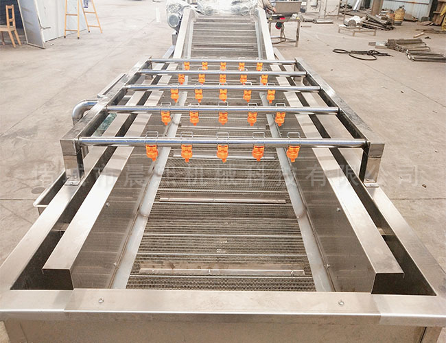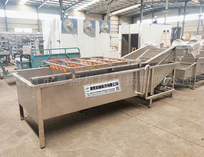 晨熙機械研發的,型號多種,價格不同,可根據用戶需求,為您量身定做設備,提供廠房規劃,設備方案,售后服務等等,垂詢。連續式葉菜類蔬菜氣泡清洗機產品采用不銹鋼制造而成、堅固耐用、設備清洗的原料不會受損傷,從而達到洗潔凈高、節省勞力、節水、設備 性穩定,可靠等效果、我公司根據有些地區土質粘性大,葉類蔬菜難清洗的特點設計生產的紅薯去泥清洗機、集自動連續清洗,高壓噴淋二次清洗確保產品洗凈率。被清洗物潔凈高出人工常規洗法三倍以上。 本機采用高壓水流和氣泡發生裝置沖擊被清洗物體表面,葉類蔬菜去泥氣泡清洗機,氣泡在與物體接觸時破裂產生的能量,會對被清洗物體表面起到一個沖擊和刷洗的作用,刷洗被清洗物體表面,將被清洗物體清洗干凈。