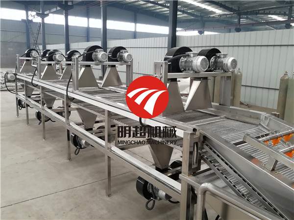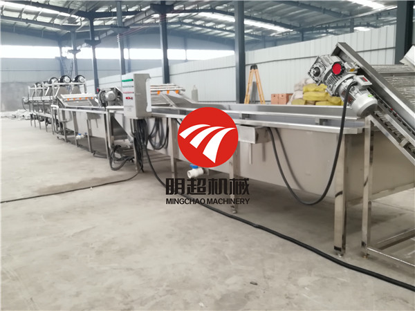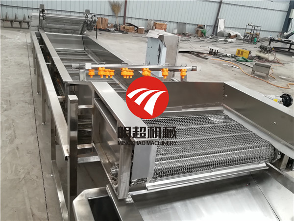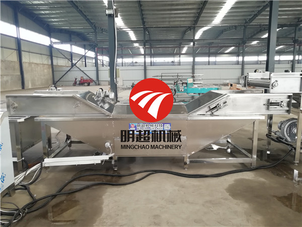 全自動(dòng)蔬菜清洗機(jī)工作原理大致是:首先需要清洗的蔬菜全部放入水槽,在高壓水流和強(qiáng)力氣泡的作用下,被充分打散、翻滾、清洗、傳送。蔬菜表面的泥沙會(huì)脫落,沉淀到底部隔離倉,防止了翻揚(yáng)回流造成再度污染。而從蔬菜上洗落下來的雜物和小蟲會(huì)漂浮在水面,然后被網(wǎng)孔收集,溢出水槽的水流被排除水箱,進(jìn)入尼龍袋中。蔬菜被蔬菜清洗機(jī)洗干凈后,再經(jīng)過噴淋的清洗,然后通過傳送帶送出,傳送帶末端有一個(gè)吹起裝置,沒有被清理掉的雜物吹落。蔬菜清洗機(jī)自帶水循環(huán)系統(tǒng),清洗槽和低貯水箱中的水在高貯的水箱中過濾后,再由離心泵加壓被送回水槽。耗水量較低,節(jié)水節(jié)能。所有附屬在清洗機(jī)上的裝置及構(gòu)件都可簡(jiǎn)便安裝、拆卸和清洗。通過二至三臺(tái)的連接,可使清洗、去異物、殺菌、冷卻等工藝連續(xù)進(jìn)行。蔬菜清洗機(jī)主要部分皆采用不銹鋼制作,洗凈度高,能保持原有色澤。廣泛用于清洗葉菜類、食用菌類、水果、海產(chǎn)品和中草藥類等各類農(nóng)副產(chǎn)品。是當(dāng)今蔬菜加工、食品、餐飲等行業(yè)的設(shè)備。